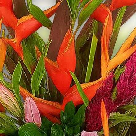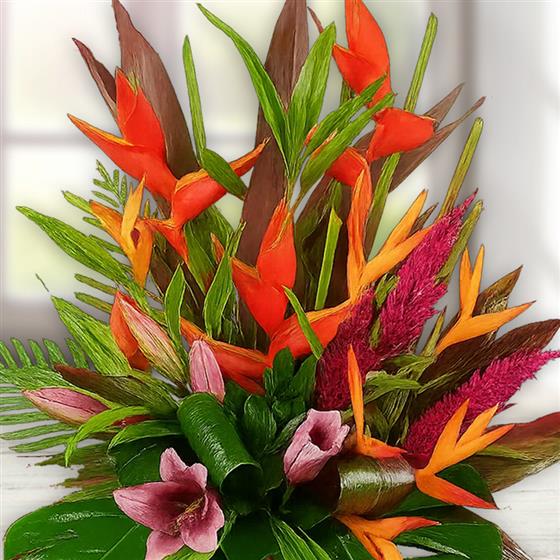 Exotic Splendor bursts with vibrant color and captivating charm, showcasing a stunning mix of tropical blooms, lush greenery, and elegant lilies. Bold and beautiful, this bouquet is a celebration of nature’s most dazzling forms—perfect for making a striking statement or adding a touch of paradise to any space.